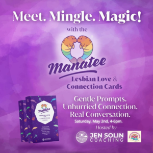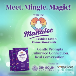 Twice a month, I facilitate online events with the Manatee Lesbian Love & Connection Cards with close to 100 growth-oriented lesbian & queer folx from Conscious Girlfriend Academy and others from around the world who are looking to make friends, create community, meet potential love interests, and get beyond small talk.
