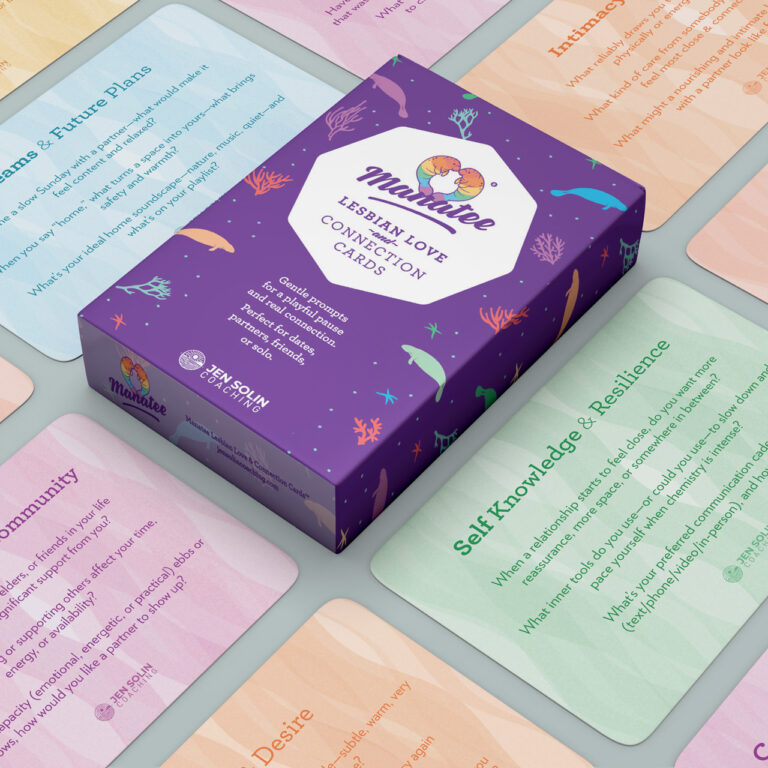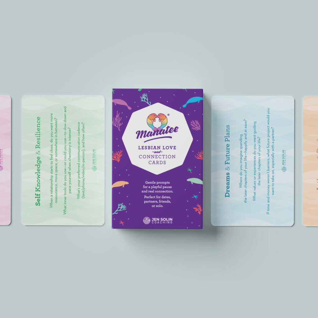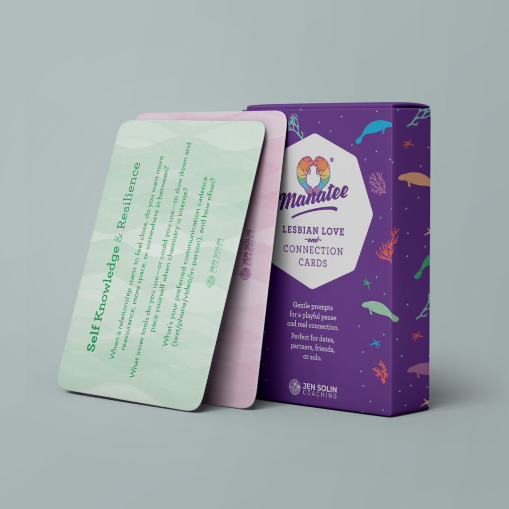 A gentle deck of cards to help you slow down, get curious, and choose with care. Created with lesbians, queer & nonbinary hearts in mind, welcoming to all seeking deeper connection. Designed to spark unhurried conversations - on dates, with partners, friends, or solo.