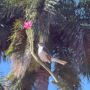 About 500 feet from my house, I looked up and saw these beautiful mockingbirds, looking quite regal, perched on the bare branches of a plumeria tree. There was a single bright pink blossom blooming right where one of the birds sat.